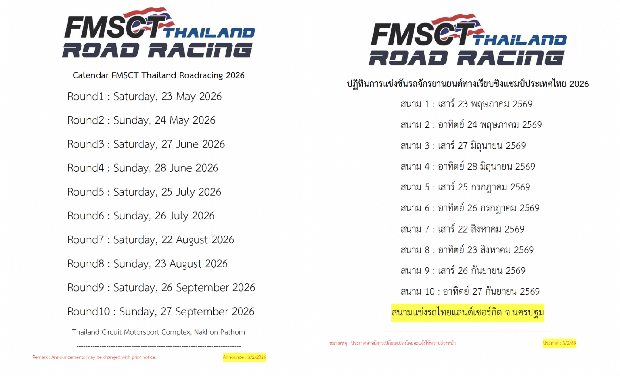 UPCOMING RACE การแข่งขันครั้งต่อไป